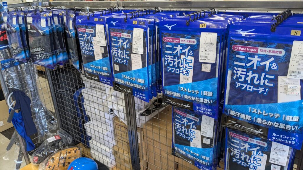 アンダーシャツ各種、スライディンパンツや打者手袋、守備手袋、ストッキング、ソックス、ベルトなど野球に必要なウエア一式を揃えております。