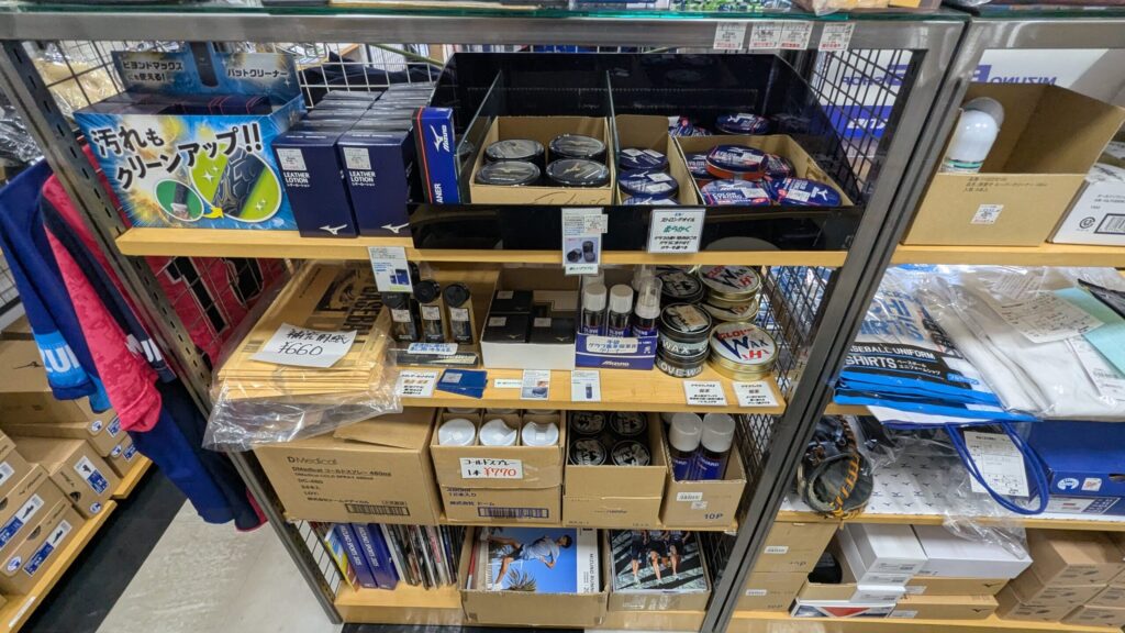 グローブやスパイクなど日々欠かせないメンテナンスをサポートするオイルや汚れ落としも、スタッフ厳選品をご用意しております。